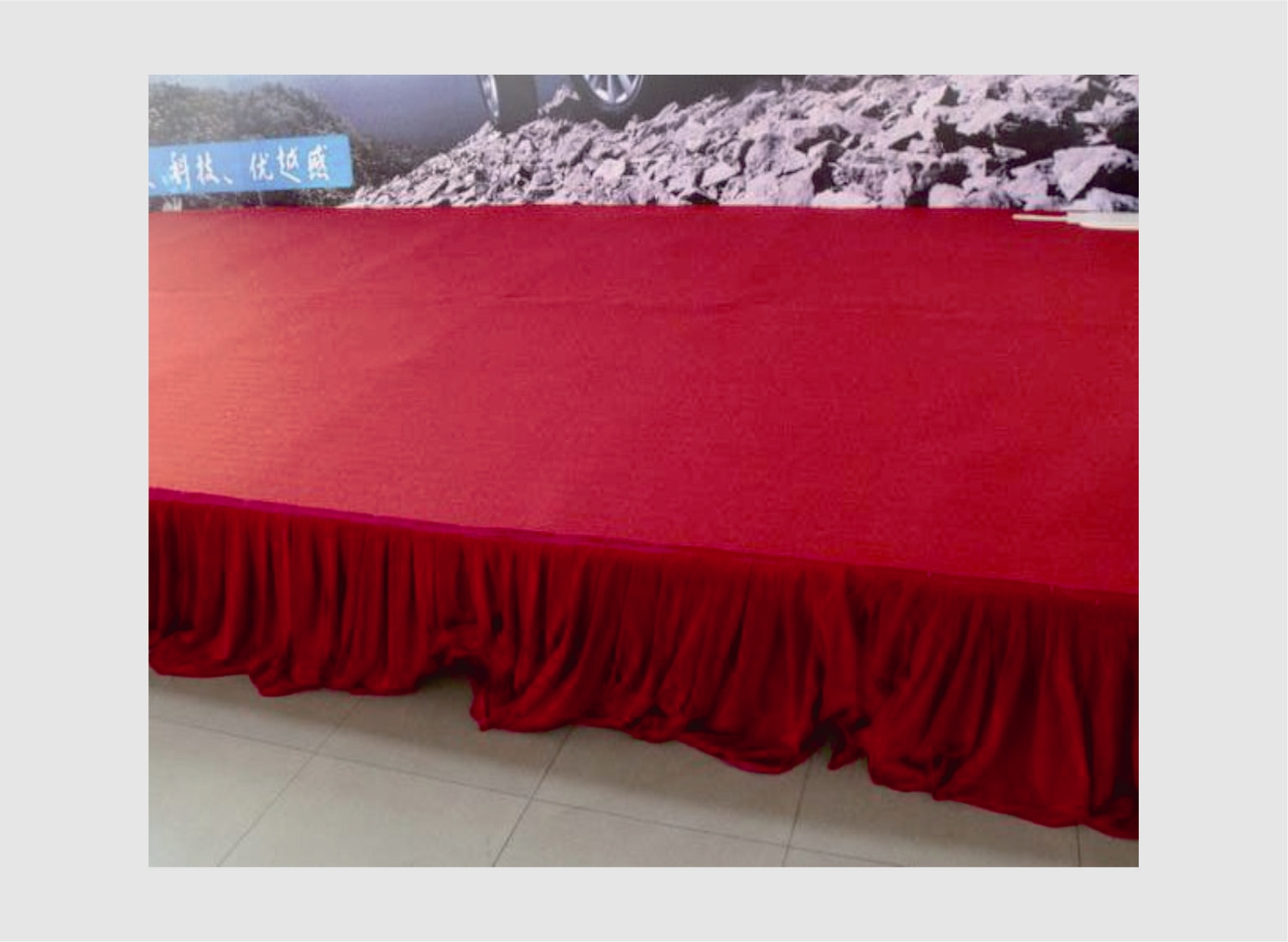 我司提供舞臺搭建服務,配置舞臺專用地毯。舞臺專用地毯質量要求不起球,不掉毛,平整度好,硬度好。地毯主要以紅色、黑色、灰色為主。地毯廣泛用于各種慶典活動,展覽展會,婚慶場所等。