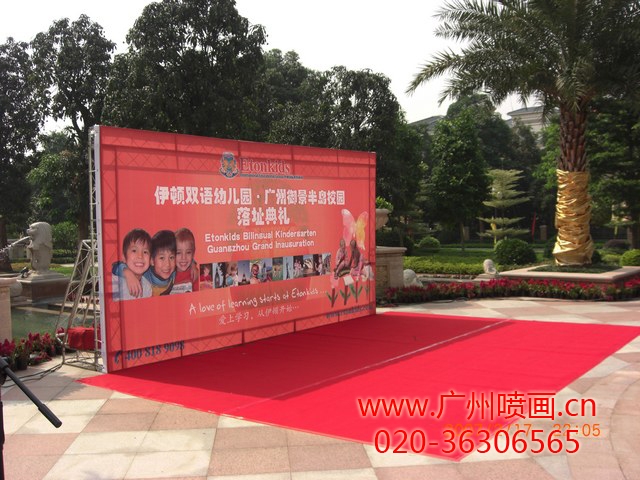 左邊桁架:伊頓雙語(yǔ)幼兒園07年落址典禮客戶沒有要求要黑底燈布,白底燈布會(huì)透光,所以能看到桁架陰影,客戶沒有在意。